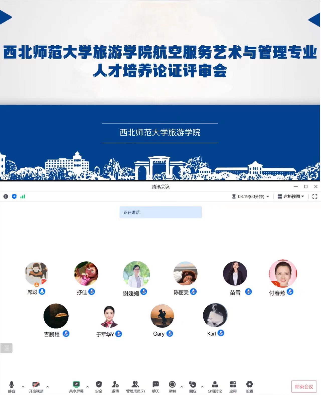 2023年5月31日,为科学、严谨、高效地完成航空服务艺术与管理专业本科人才培养方案的修订工作,伟德国际1946源于英国邀请到重庆师范大学伟德国际1946源于英国副经理刘睿教授、航空服务艺术与管理系主任谢媛媛老师,西北民族大学管理公司航空服务艺术与管理系主任付春燕老师,乌鲁木齐航空有限责任公司人力资源部总经理张学永、客舱服务部副总经理吉鹏程,南方航空公司乌鲁木齐分公司人力资源招飞部主任刘鑫等来自省内外科研机构、高等院校及航空公司的专家学者,在线举行航空服务艺术与管理专业本科人才培养方案专家论证会。北京广慧金通教育集团区域总经理苗雪、伟德国际1946源于英国航空服务艺术与管理系主任万抒佳老师,北京广慧金通公司驻西北师大办事处主任席聪老师,以及教师代表共计10人参加了此次会议。