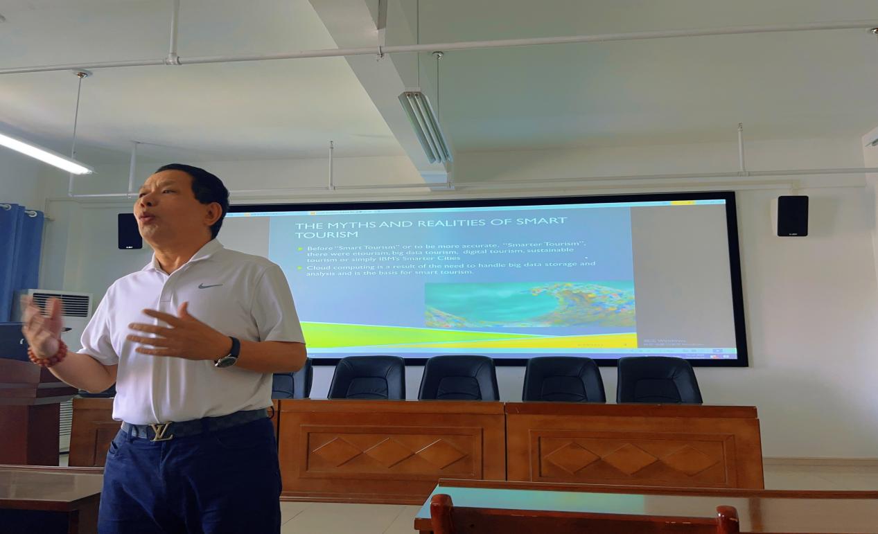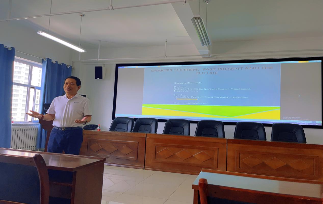 6月29日下午,美国密执安州立大学旅游学博士,美国尼亚加拉大学旅游与酒店管理公司终身教授,International Journal of Hospitality and Event Management杂志顾问编辑,美国尼亚加拉大学电子商务研究中心主任和国际旅游教育工作者协会主席周宗清教授在伟德国际1946文科实训楼904教室为公司师生作了题为“Smarter tourism:Past, present and the future”的专题报告,报告会由武克军副经理主持。