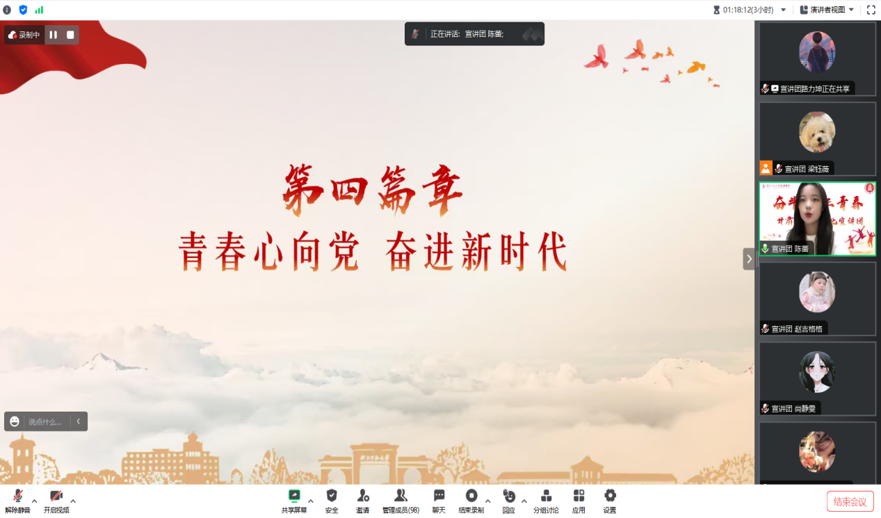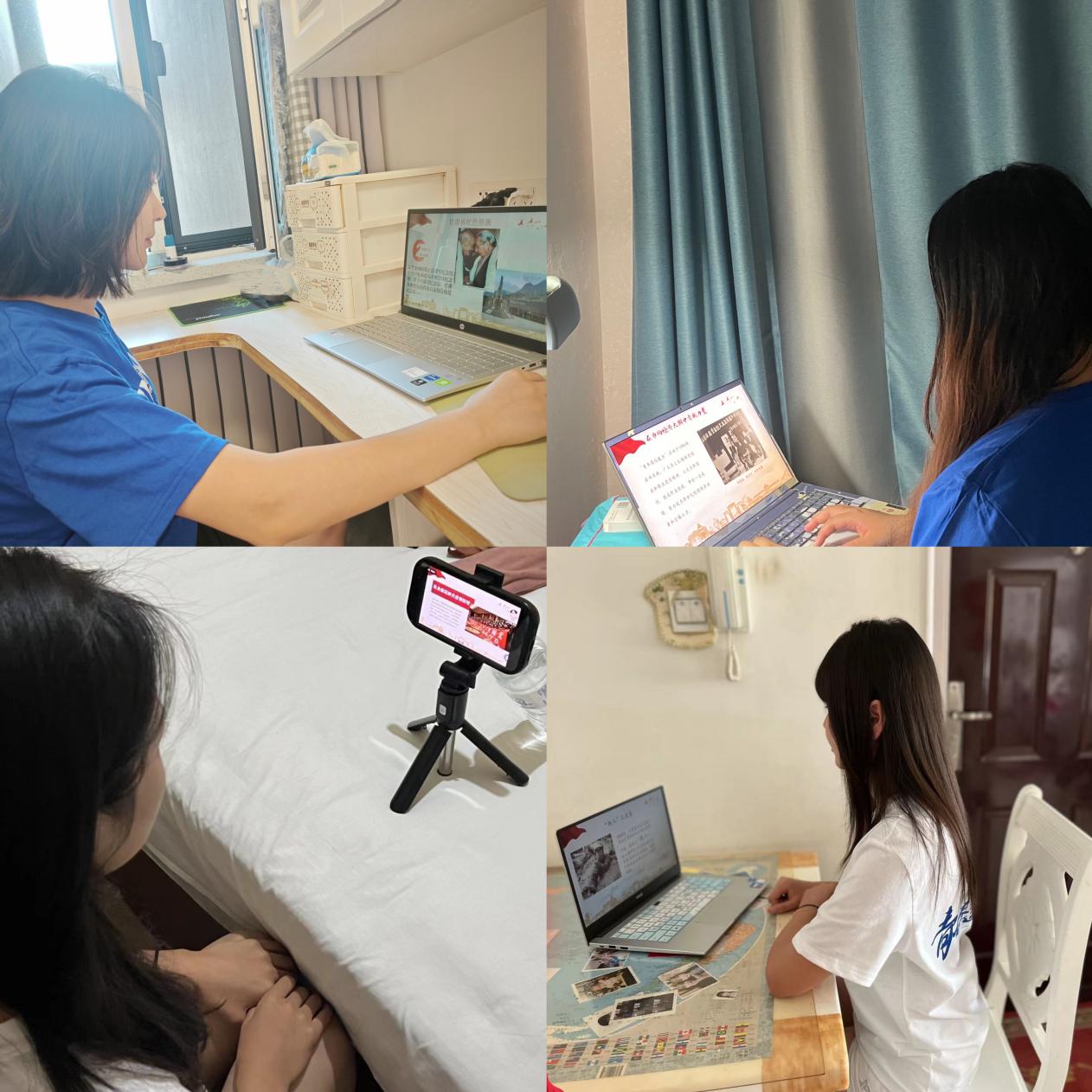 图为部分宣讲团成员正在进行线上宣讲(师佳莉、尚静雯、陈蕾、赵吉格格)