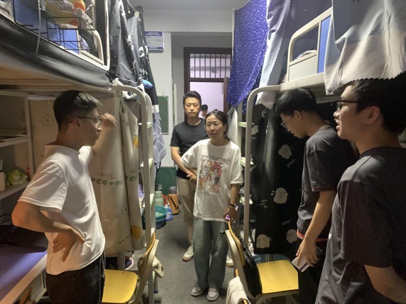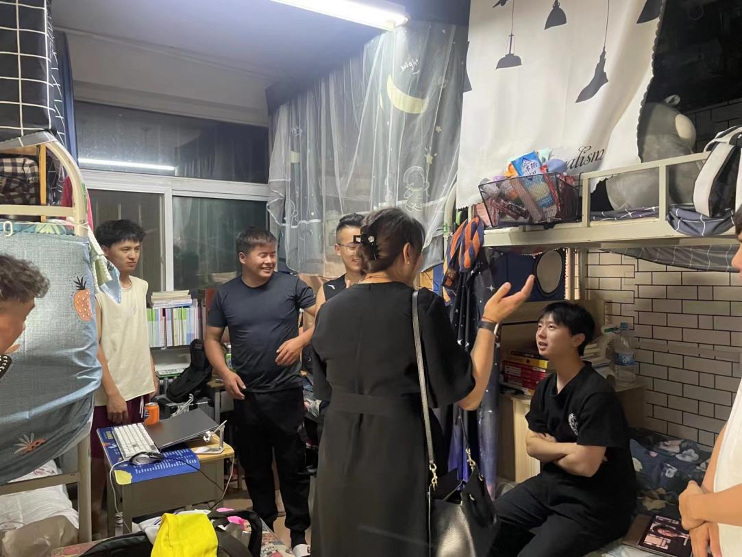 专职辅导员与员工们一一交流,了解员工们暑期生活,并鼓励同学们在新学期接触新事物,提升自身专业技能,对未来学习生活有所规划,利用所思所想,所见所闻,运用好知识,拓宽眼界,并同时希望宿舍同学之间和睦相处。