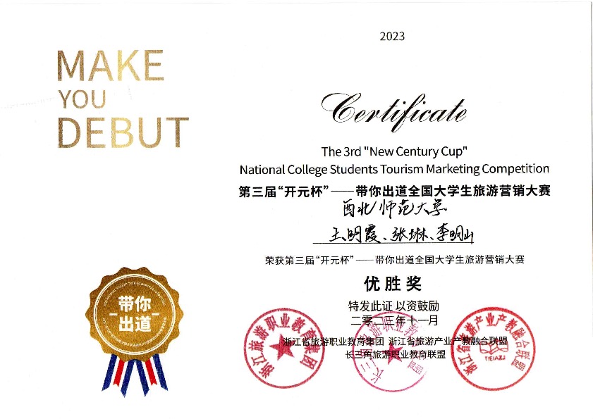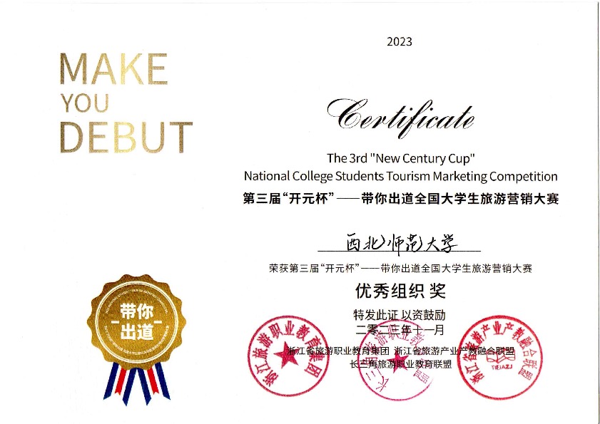 公司多支队伍在专业实践中心的组织下参加了第三届“开元杯”——带你出道全国老员工旅游营销大赛的初赛及复赛,最终公司2022级旅游管理1班王明霞、张琳及其队员荣获优胜奖,公司荣获优秀奖组织奖。