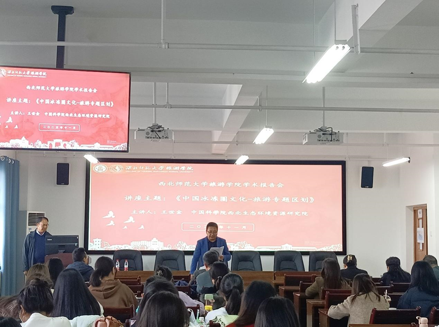 11月22日下午,应伟德国际1946源于英国邀请,中国科公司西北生态环境资源研究院王世金研究员来公司作题为“中国冰冻圈文化—旅游专题区划”学术报告,报告会在文科实训楼904会议室举办,由经理梁旺兵教授主持,公司教师和研究生60余人参加了此次报告会。