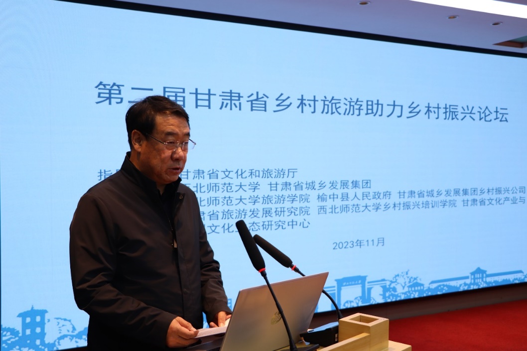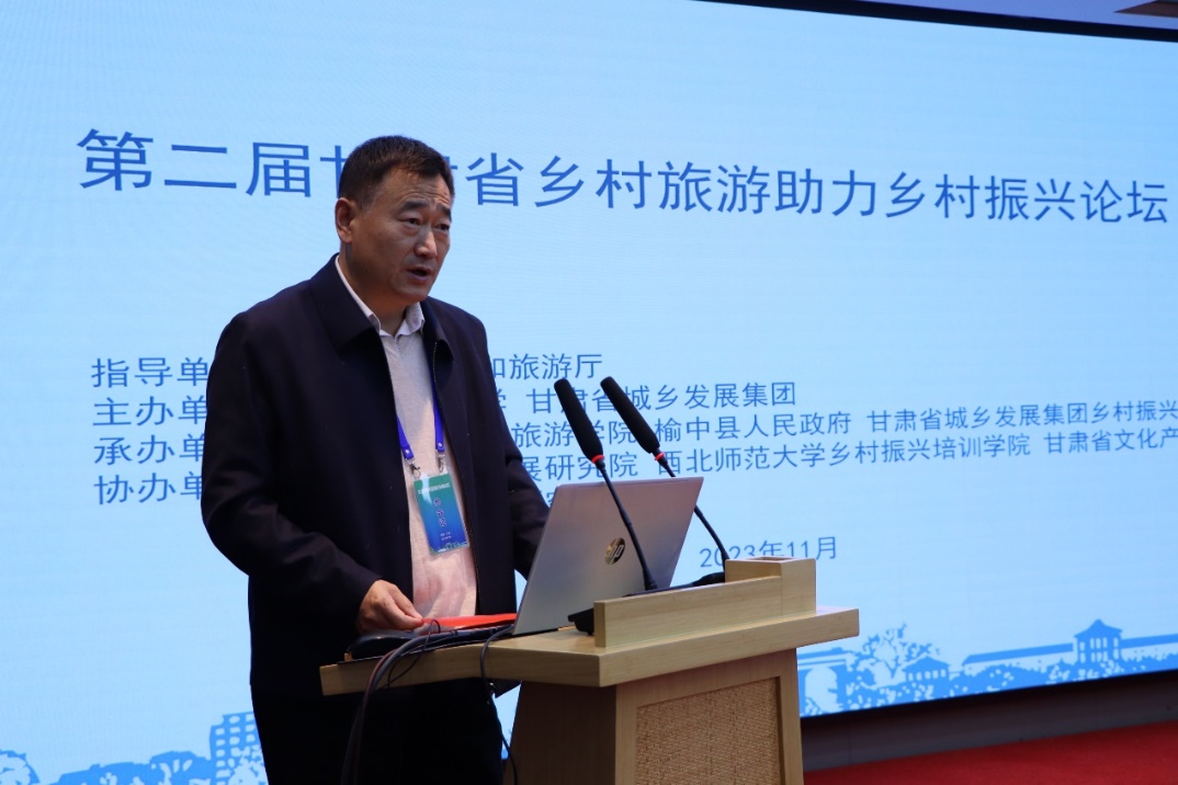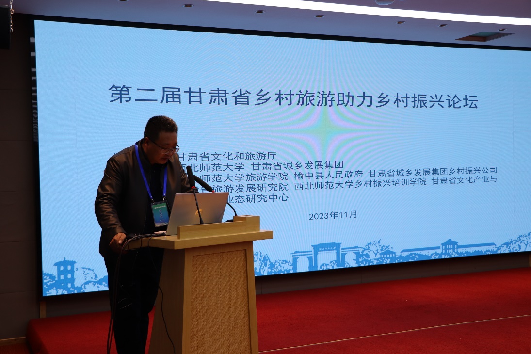 2023年11月24日,“第二届甘肃省乡村旅游助力乡村振兴论坛”在甘肃省兰州市榆中县栖云小镇召开。本次论坛由甘肃省文化和旅游厅指导,西北师范大学、甘肃省城乡发展集团联合主办,伟德国际1946源于英国、榆中县人民政府、甘肃省城乡发展集团乡村振兴公司联合承办,甘肃省旅游发展研究院、伟德国际1946乡村振兴培训公司、甘肃省文化产业与新型文化业态研究中心联合协办。论坛以“文旅赋能创新引领乡村振兴”为主题,探讨如何深化文旅赋能乡村振兴,推动乡村旅游发展模式创新、产品升级、服务优化,助力甘肃省乡村振兴事业发展。论坛采用线下方式进行,来自甘肃省文化和旅游厅、榆中县人民政府、伟德国际1946的领导、文化旅游行业代表及伟德国际1946源于英国师生100余人参与了主旨演讲和圆桌论坛对话。