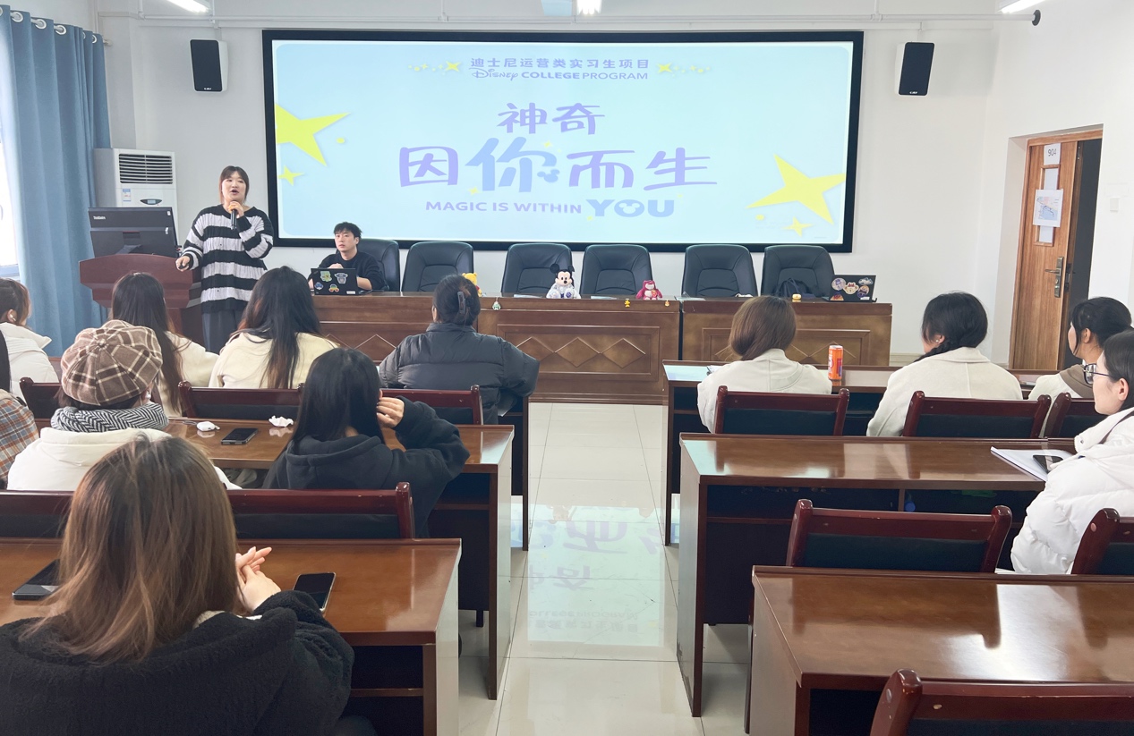 2023年11月21日,上海迪士尼国际主题乐园人力资源部曲笑宇、周星谕、葛英杰一行来伟德国际1946源于英国举行了实习生项目的宣讲。