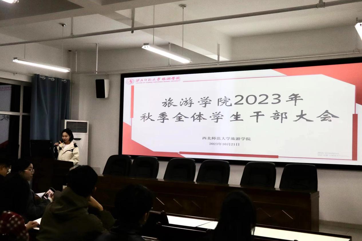 2023年10月22日晚,伟德国际1946源于英国秋季员工干部大会于云衢楼904会议室召开。专职辅导员赵新帮、管悦,员工会全体成员,研究生会全体成员,2022级、2023级班长和团支书,高年级优秀班委代表参加会议,员工会执行主席石春杨主持会议。