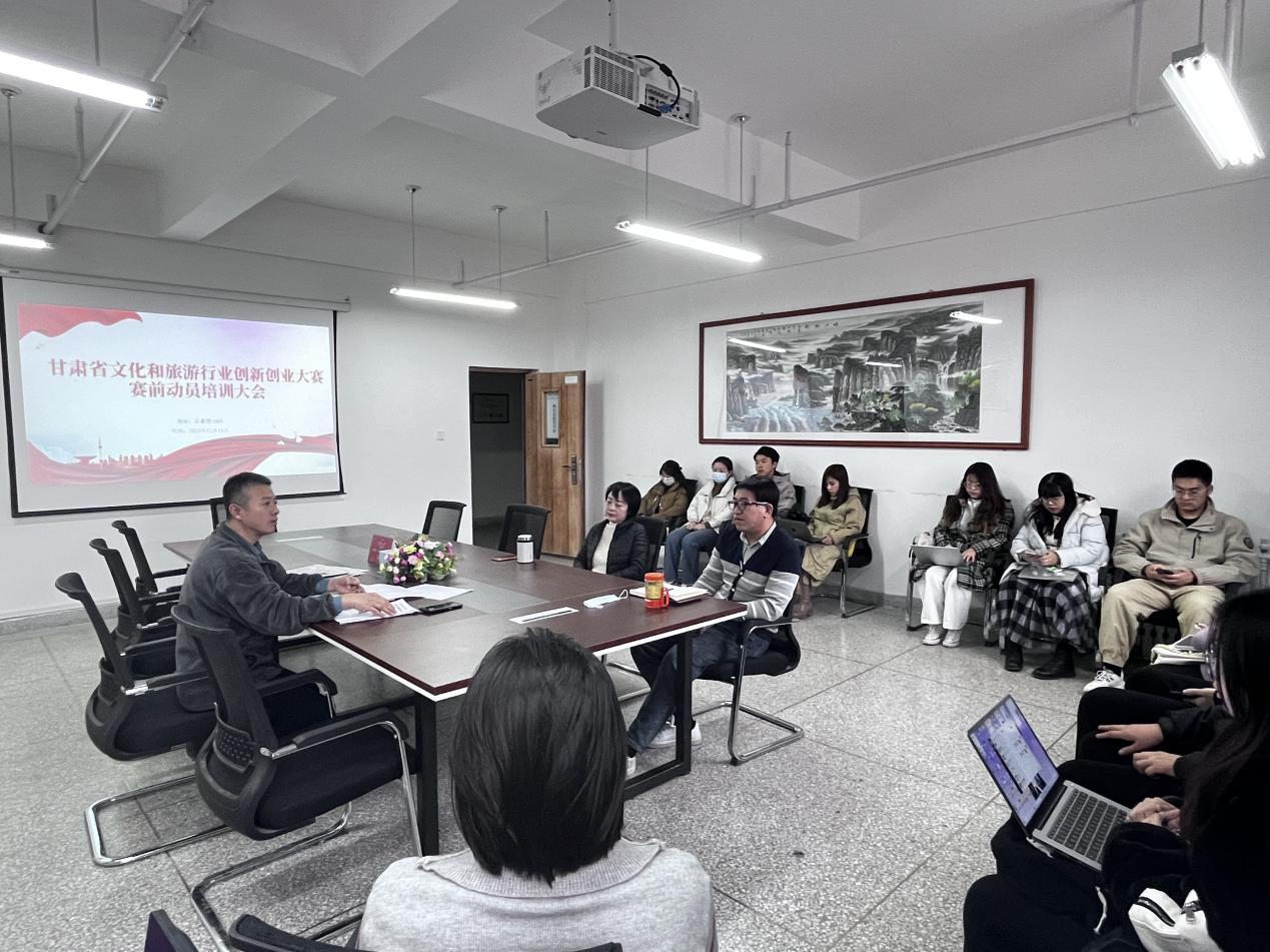 2023年12月14日,伟德国际1946源于英国在云衢楼1005室举办2023年甘肃省文化和旅游行业创新创业大赛赛前动员培训活动。专任教师杨阿莉、赵玉琴、蒲利利,专职辅导员管悦,参加大赛获奖员工辜友骞、白沙、赵紫涵应邀组成专家指导团进行赛前指导,党委副书记戴小武主持活动。