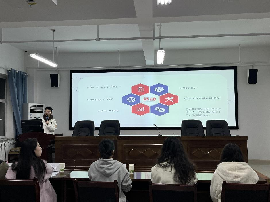 大会第二项,由院青协负责人赵亮从食堂劳动育人项目、雷锋月衣物回收、社区志愿服务、文明校园建设、助力新生入学、义务讲解、校庆志愿服务等方面,为大家详细介绍了这一学年公司开展的各项志愿服务活动并为后续志愿工作开展做出安排。