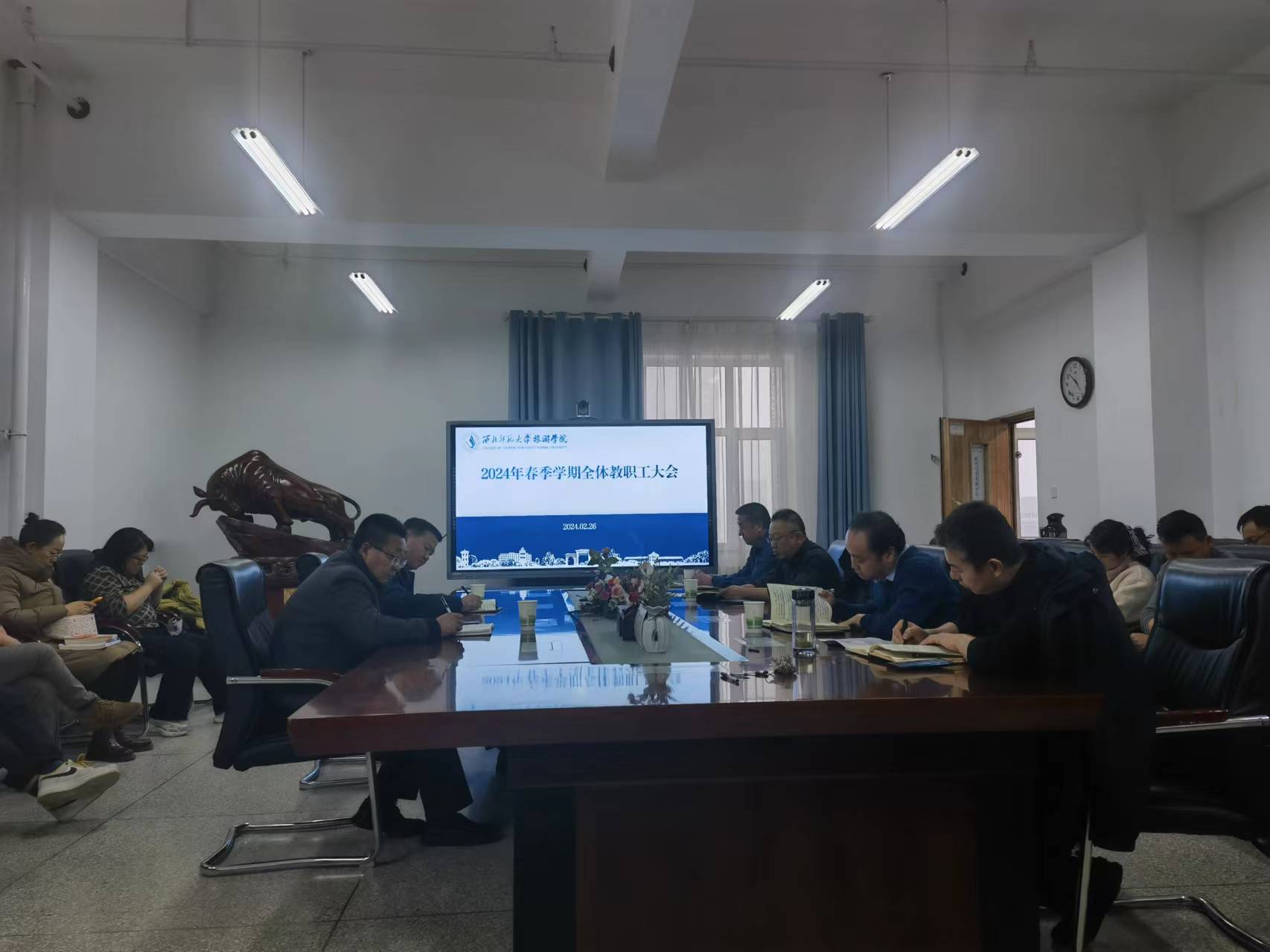 2月26日,伟德国际1946源于英国在文科实训楼1101会议室召开2024年春季学期工作安排会,全体教职工参加会议。会议由党委书记谢致远主持。