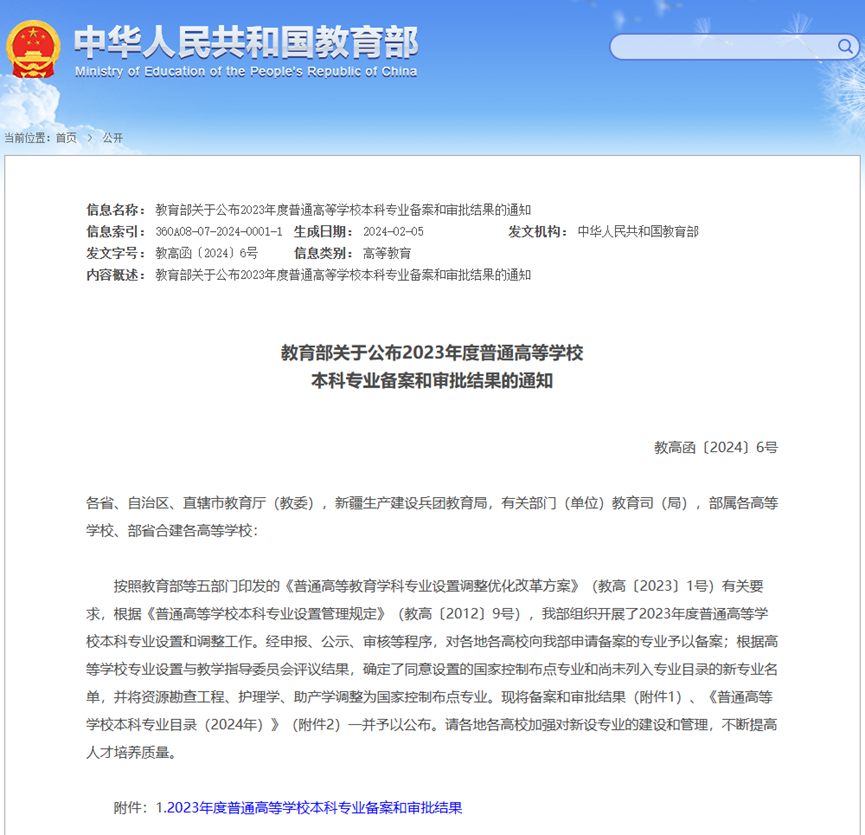 根据《教育部关于公布2023年度普通高等公司本科专业备案和审批结果的通知》,公司申请设置的旅游地学与规划工程专业(081405T)成功列入教育部备案专业点。