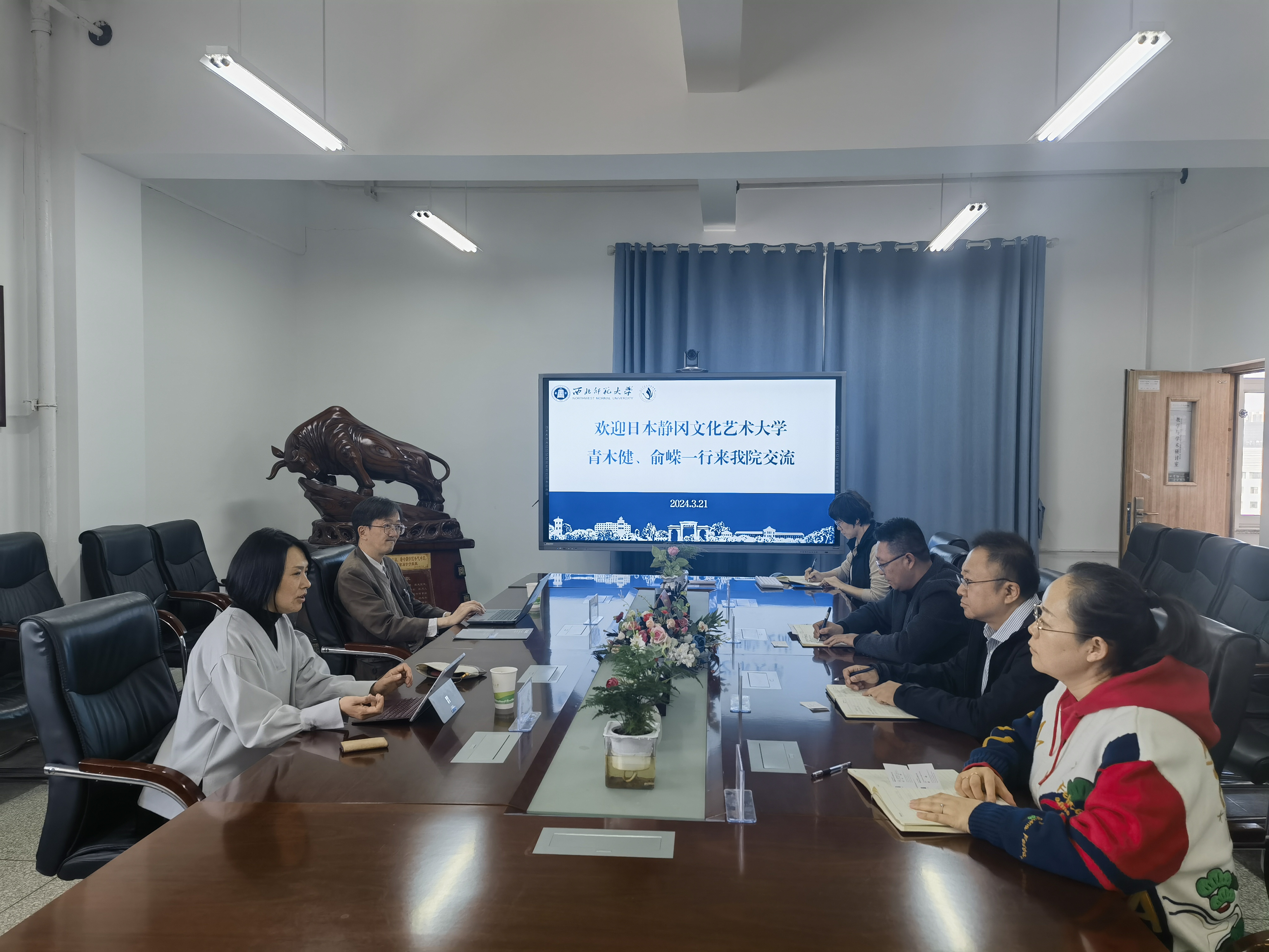 2024年3月21日,日本静冈文化艺术大学文化艺术研究中心青木健教授、国际文化系俞嵘教授一行来伟德国际1946源于英国开展考察交流活动。公司经理梁旺兵、副经理柴亚林、武克军,旅游管理系主任彭睿娟及相关专业教师参加交流座谈会。