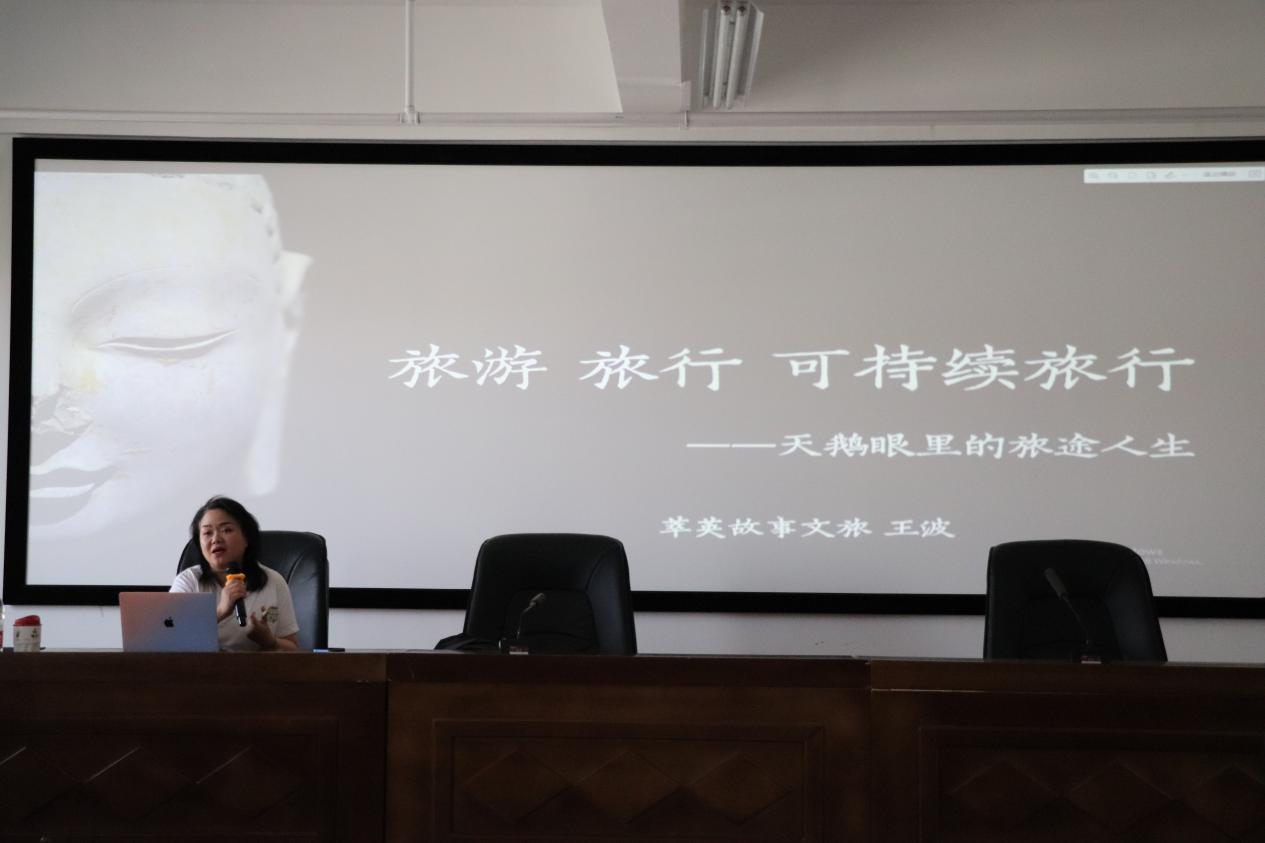 3月28日下午,应伟德国际1946源于英国邀请,兰州萃英故事文旅发展有限公司总经理王波来公司作题为“旅途人生—旅游旅行和我心里的可持续旅行”学术报告。报告会在文科实训楼904会议室举办,周宏副教授主持,公司教师、研究生和本科生100余人参加了此次报告会。