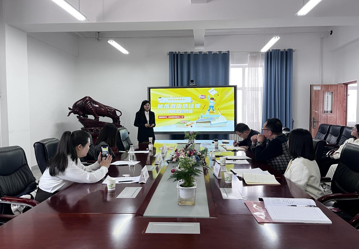 赵金碧介绍了行业动态、酒店集团主营业务、企业规模、岗位晋升路径、福利待遇等内容,她希望能积极推动校企合作,为企业输送更多优秀人才。同时,充分肯定了公司对旅游管理类人才的培养成果,对入职企业的毕业生和实习生表现给予了高度认可。