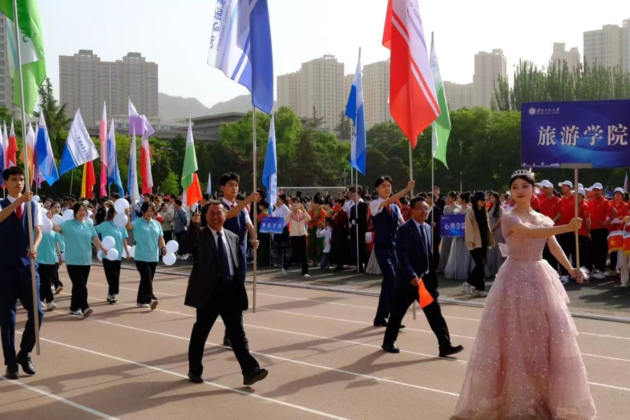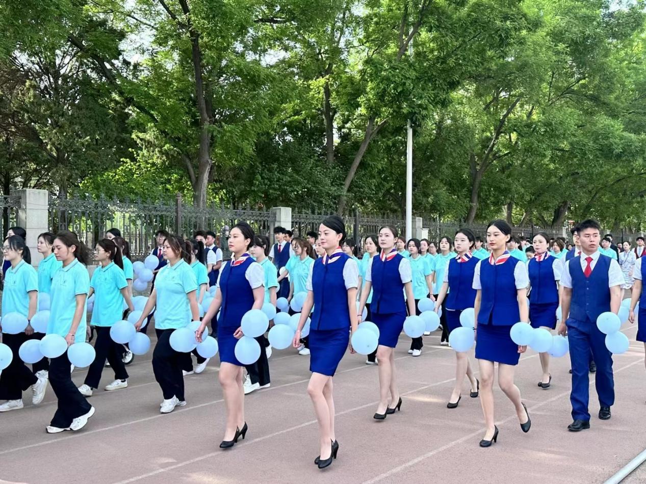 在开幕式中,由101名旅游管理与航空服务艺术与管理专业学子及全体教职工组成的公司方阵以“飞机”为队形,以“团结一心、砥砺前行、旅战旅胜、扬帆起航”为口号,踏步坚实的步伐走过主席台,展示了公司师生积极向上的精神面貌。