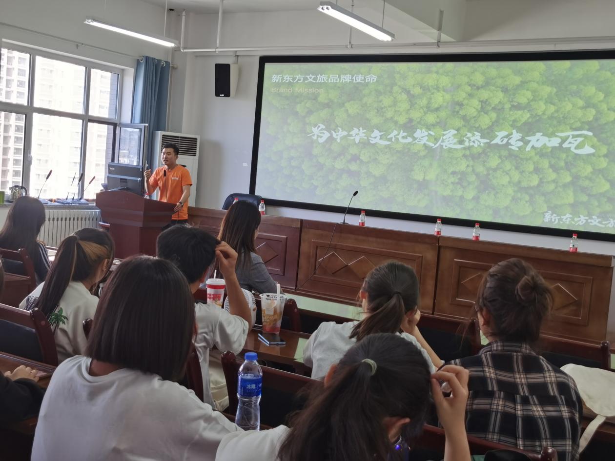 新东方招聘主管白宇麒、文旅讲师主管高祥分别为大家介绍了新东方教育科技集团教育板块和文旅板块的主要业务,分享了自己在新东方集团的切身感受,热情地邀请同学们加入新东方集团。