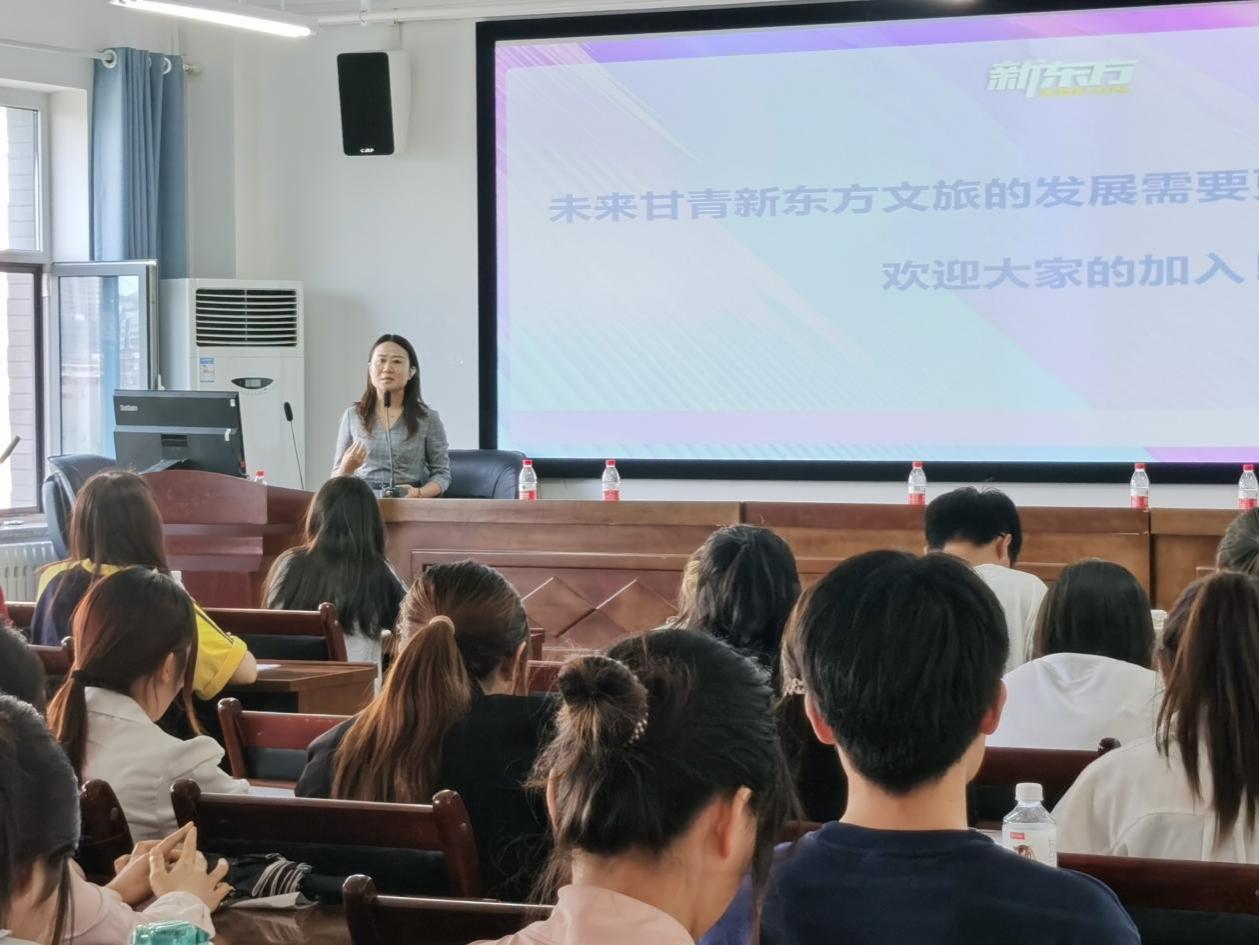 随后,人力资源总监朱丽华详细介绍了新东方沃凯德(甘肃)文旅有限公司实习生招聘的岗位及相关福利。