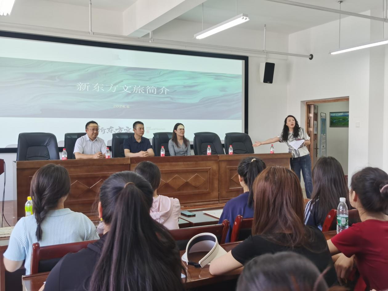 为认真学习贯彻习近平总书记对旅游工作重要指示,将指示精神进一步贯彻落实到伟德国际1946源于英国人才培养、科学研究、社会服务等各方面,公司着力开拓高质量的文旅实习基地,加强实习教学改革与研究,健全实习教学体系、确保人才培养质量不断提升。2024年6月14日下午,新东方沃凯德(甘肃)文旅有限公司、新东方兰州公司人力资源总监朱丽华,招聘主管白宇麒、文旅讲师主管高祥、招聘专员崔雅雯、文旅计调邓建军一行应邀来公司,在云衢楼904教室为2022级旅游管理专业全体同学及2021级航空服务艺术与管理专业部分同学带来了一场别开生面的实习宣讲会。