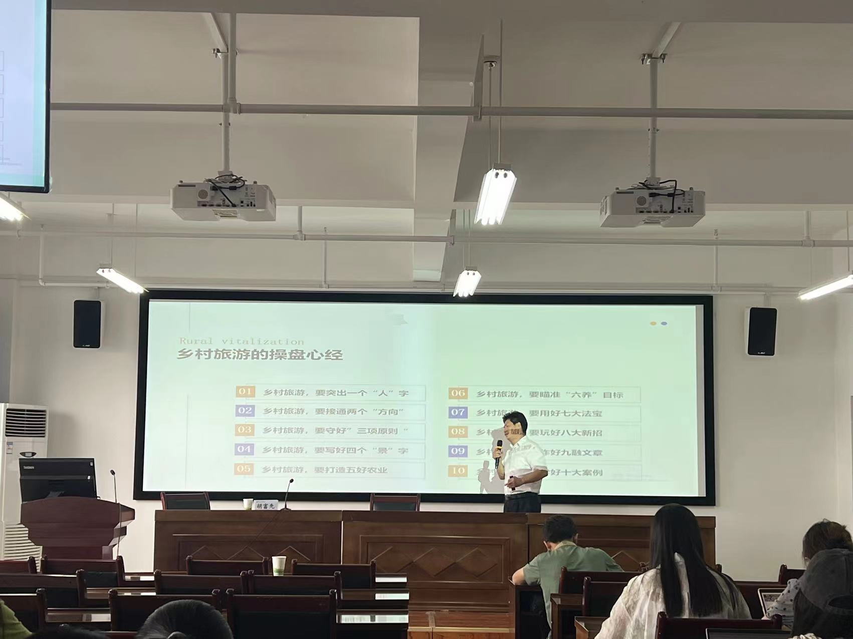 随后,胡委员依次讲解了乡村旅游要接通两个“方向”,要守好”三项原则,要写好四个“景”字,要打造五好农业,要瞄准“六养”目标,要用好七大法宝,与要玩好八大新招,要作好九融文章,要学好十大案例。