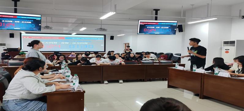 比赛开始,主席介绍到场评委嘉宾,前两位评委分别是文公司前辩论队队长付斯月,伟德国际1946源于英国辩论队领队马帅奇,第三位评委由全场观众担任。双方辩手自我介绍后,依次有序进行开篇立论、质询、盘问、自由辩论、总结陈词等环节。
