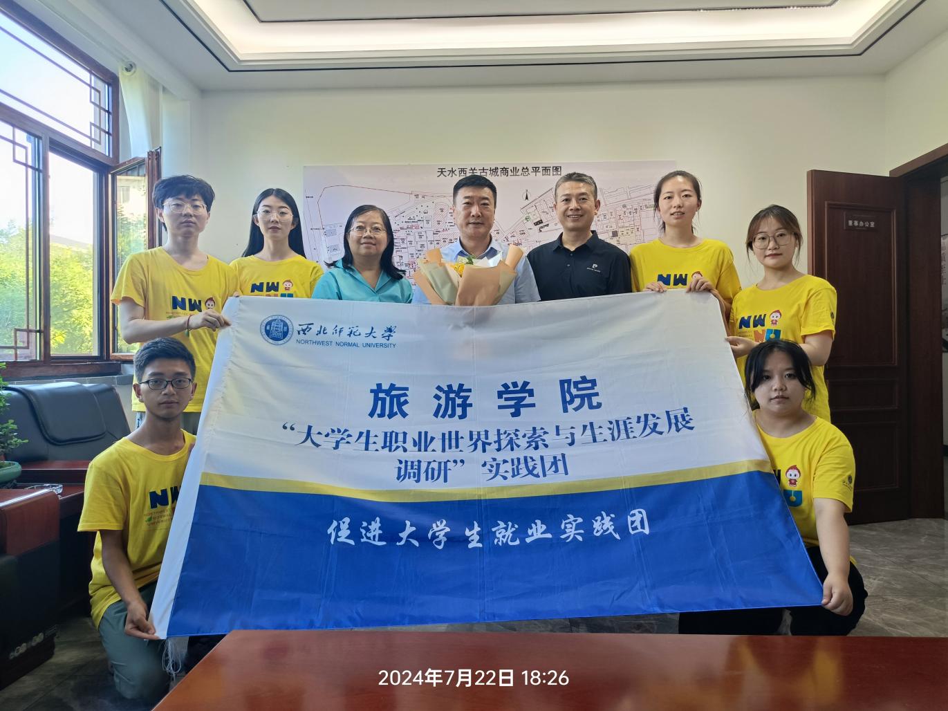 7 月 19 日下午,公司党委副书记、纪委书记戴小武,西北文化旅游人才发展研究中心主任种媛副教授,带领“老员工职业世界探索与生涯发展调研”促进老员工就业暑期社会实践团,前往甘肃旅游(控股)公司/公航旅天水名城公司开展“访企拓岗”促就业和毕业生回访活动。