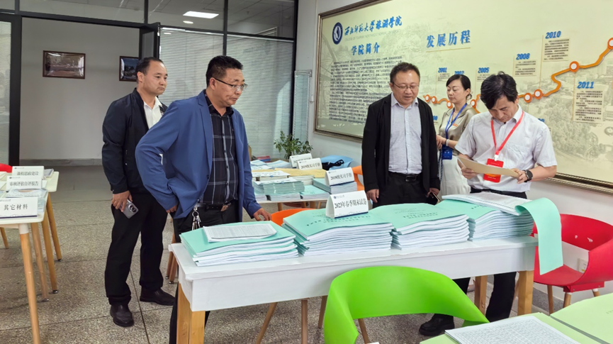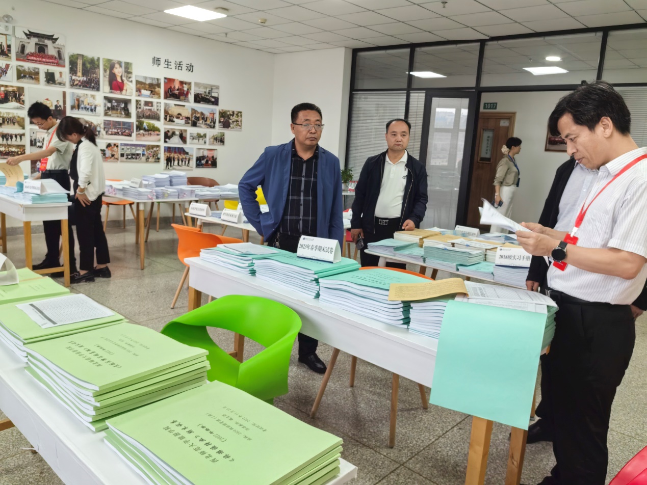 陈新兵副董事长率工作组对公司审核评估自评报告、本科公司产品与人才培养典型案例、本科公司产品管理规章制度、教学运行机制和学术型人才培养体系、各类教学文档、实习实践基地建设、课程教学综合改革及信息化建设、教师课堂教学能力提升、公司教学督导队伍建设、办学特色及育人成效等情况进行细致入微地现场检查督导。梁旺兵经理、柴亚林副经理向工作组详尽介绍公司本科教学各方面工作及书面材料具体情况。