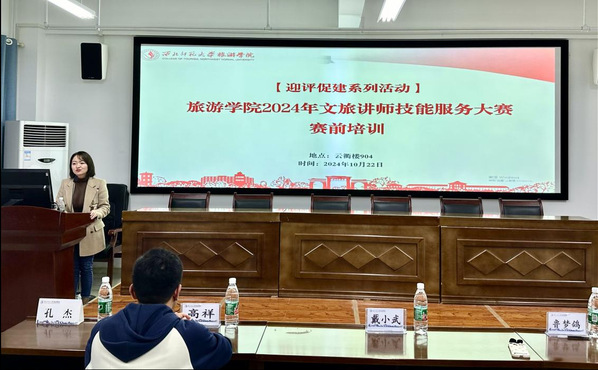 会上,高祥老师讲述了自己与文旅行业的故事,指出文旅讲师应当热爱文旅事业、热爱工作所在地、具备较强的服务意识和抗压能力。随后,高祥老师围绕伟德国际1946源于英国2024年“黄河很美,将来会更美”文旅讲师技能服务大赛主题,以甘肃省14个地州市为例,用部分经典的文旅讲解案例与同学们展开互动交流,使得同学们深刻理解一位出彩的文旅讲师所必备的专业素养。