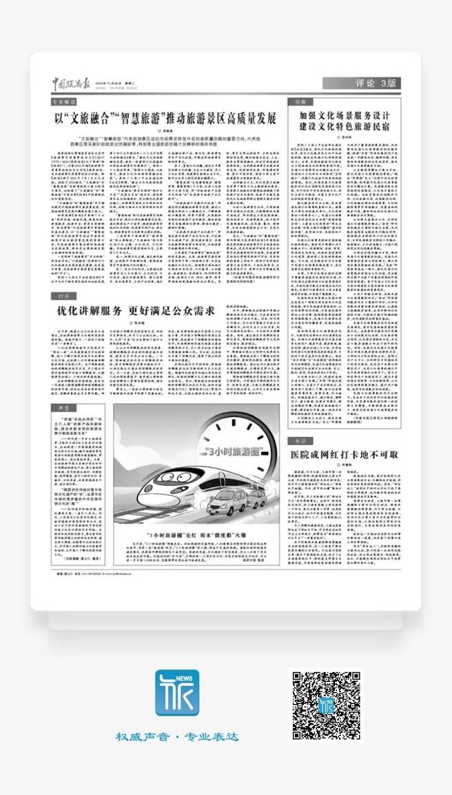 公司以旅游行业发展实际问题为导向,积极建设智库型旅游应用研究平台。公司李东泽博士紧扣民宿行业实践问题,撰文《加强文化场景服务设计 建设文化特色旅游民宿》,提出以服务设计为主线,形成了营造民宿文化场景的具体方法。文章发表于文化与旅游部主管报纸《中国旅游报》2024年10月22日期评论版。