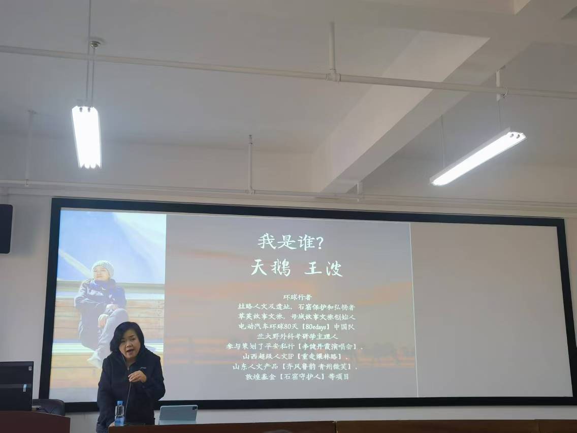 11月28日,应公司邀请,萃英故事文旅、母城故事文旅创始人,兰州大学全球员工企业家联盟副秘书长,敦煌石窟保护基金主理人王波女士前来公司,为公司研究生学术月活动带来了主题为《文旅超级人文自然IP打造概述》与《旅游新产品设计思路及执行策略》的两场精彩讲座。
