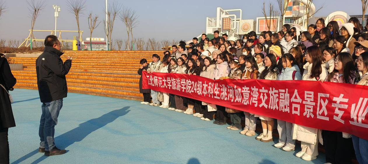在同学们对景区建设、运营、管理情况有了初步了解后,柴亚林副经理、武克军副经理、马斌斌、黄珊等公司老师分别围绕“专业特色、文旅创意、文化营造、文旅运营、数智文旅”等前沿热点话题开展现场实践教学。实践教学环节结束后,各班级以小组为单位带着“交通设施对旅游目的地形象塑造的作用;智能交通系统在旅游业中的应用;交通连接性对偏远地区旅游业发展的促进作用;交通枢纽与旅游服务中心的一体化设计;服务区新型公共文化空间的创意营造与创新发展;交旅融合催生文旅新业态、新模式、新场景的市场、产业逻辑;路衍经济如何赋能区域文化产业发展”等实践作业问题开启了对洮河如意湾景区的第二次调研考察。
