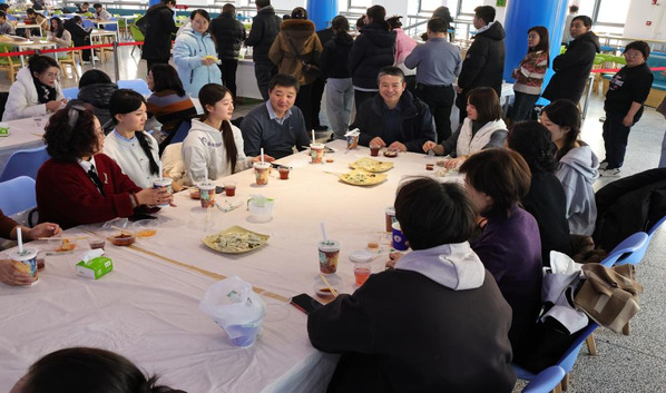 中午,家长与员工共同前往知行校区知行餐厅进行亲情互动午餐会。活动中,家长与员工们使用食堂准备的饺子馅料和饺子皮,一起包饺子、品饺子。本次活动的面粉原料来源于产自云亭耕读园,由员工与教师共同种植收割的小麦,使家长与员工获得了共同的师大记忆。随后,家长与师生共同参观伟德国际1946校史馆、博物馆,感受伟德国际1946122年教育办学精神的内涵和力量。