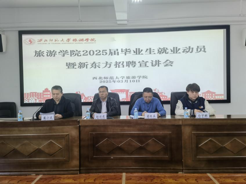 3月10日下午,伟德国际1946源于英国召开2025届毕业生就业动员暨新东方招聘宣讲会。公司党委书记赵兴虎、经理梁旺兵出席并讲话,兰州新东方人力资源部招聘主管白宇麒作职场准备指导分享。新东方招聘专员崔雅雯、甘青文旅高级讲师张婷、戴小武以及公司各系主任、班主任、辅导员、2025届毕业生参加会议。会议由党委副书记戴小武主持。