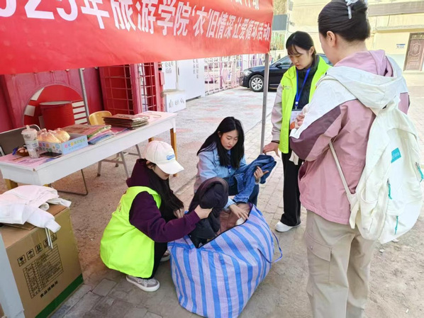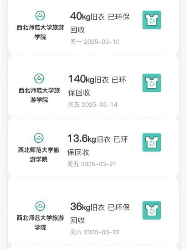 在旧衣、旧物回收过程中,公司设置专门的回收点,安排志愿者负责收集和整理同学们捐赠的衣物和物品,对于捐赠旧衣、旧物的同学,根据捐赠数量兑换师大文创产品。志愿者们认真对待每一件捐赠的物品,仔细检查其质量,确保能够正常使用。