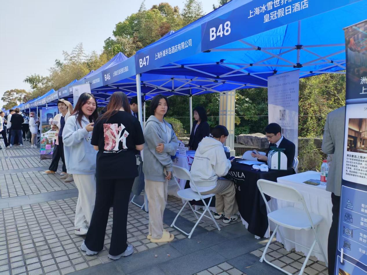 活动现场,伟德国际1946源于英国一行与用人单位深入交流,调研行业用人需求,积极推介毕业生资源,先后与海宁盐关古城景区、宋城演艺、好利来黑天鹅、上海宇振旅行社、璞缇客旅游新媒体平台、上海外滩W酒店等企业招聘负责人就实习就业、薪酬待遇、员工管理与发展等方面进行了互动交流。