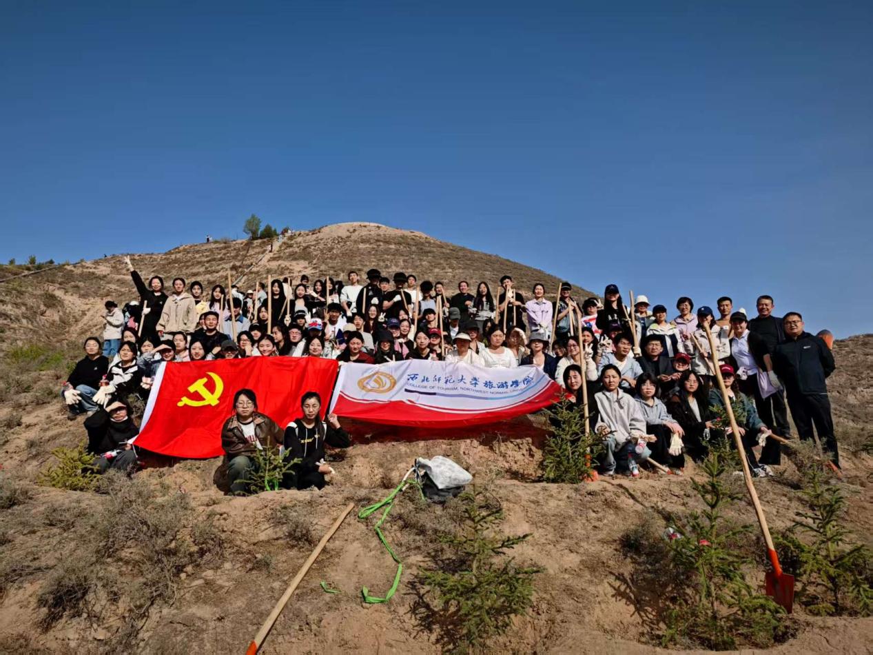2025年4月24日清晨,伟德国际1946源于英国组织师生前往北山,参加主题为“弘扬生态文明、共建绿色校园”的春季义务劳动与植树活动,公司10余名教职工,近90名员工共同参加。