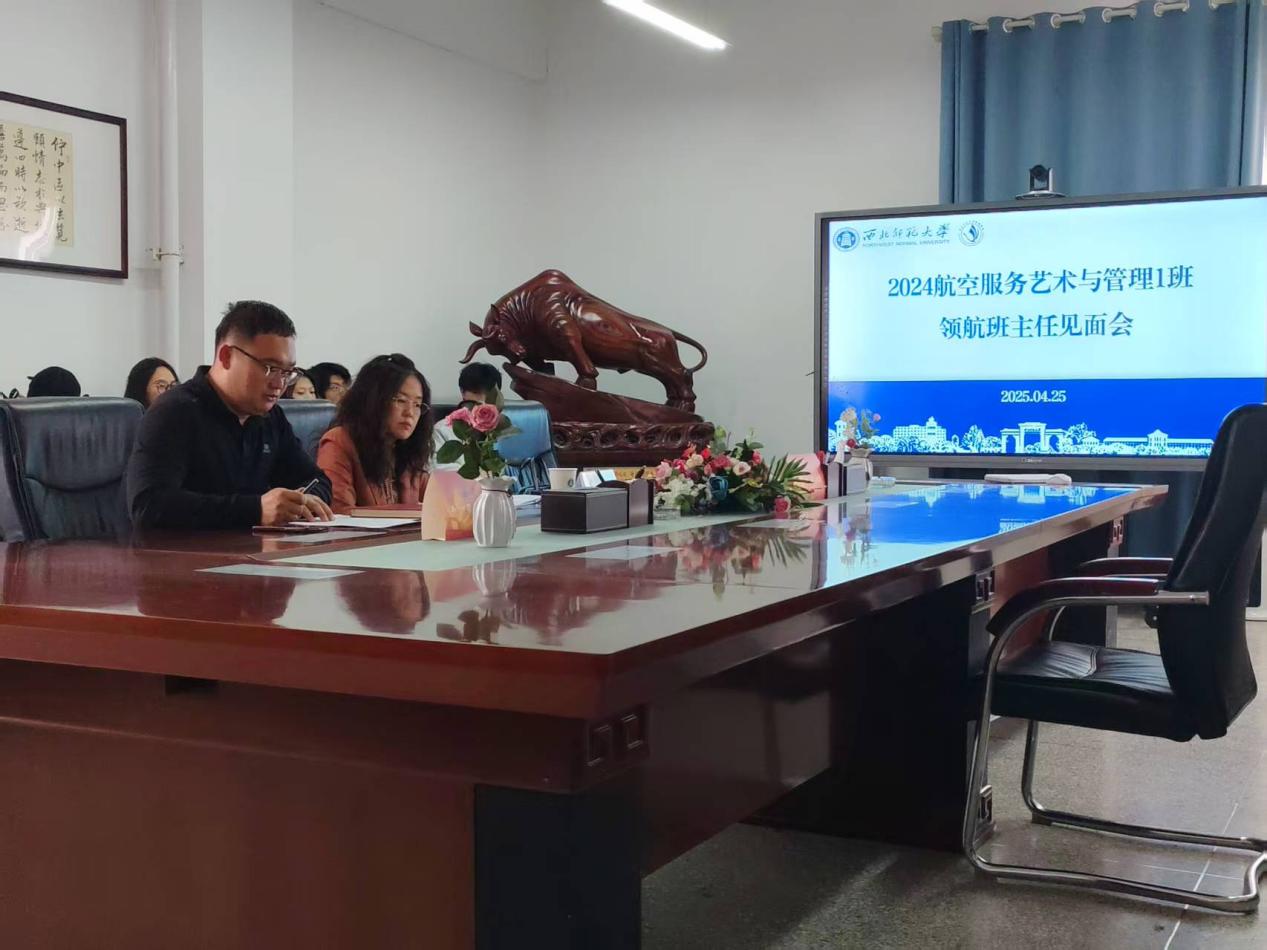 2025年4月25日下午,2024级航空服务艺术与管理一班召开领航班主任见面会,校纪委副书记王小燕老师莅临会议并讲授主题教育专题党课,护航班主任与42名班级员工共同参加。