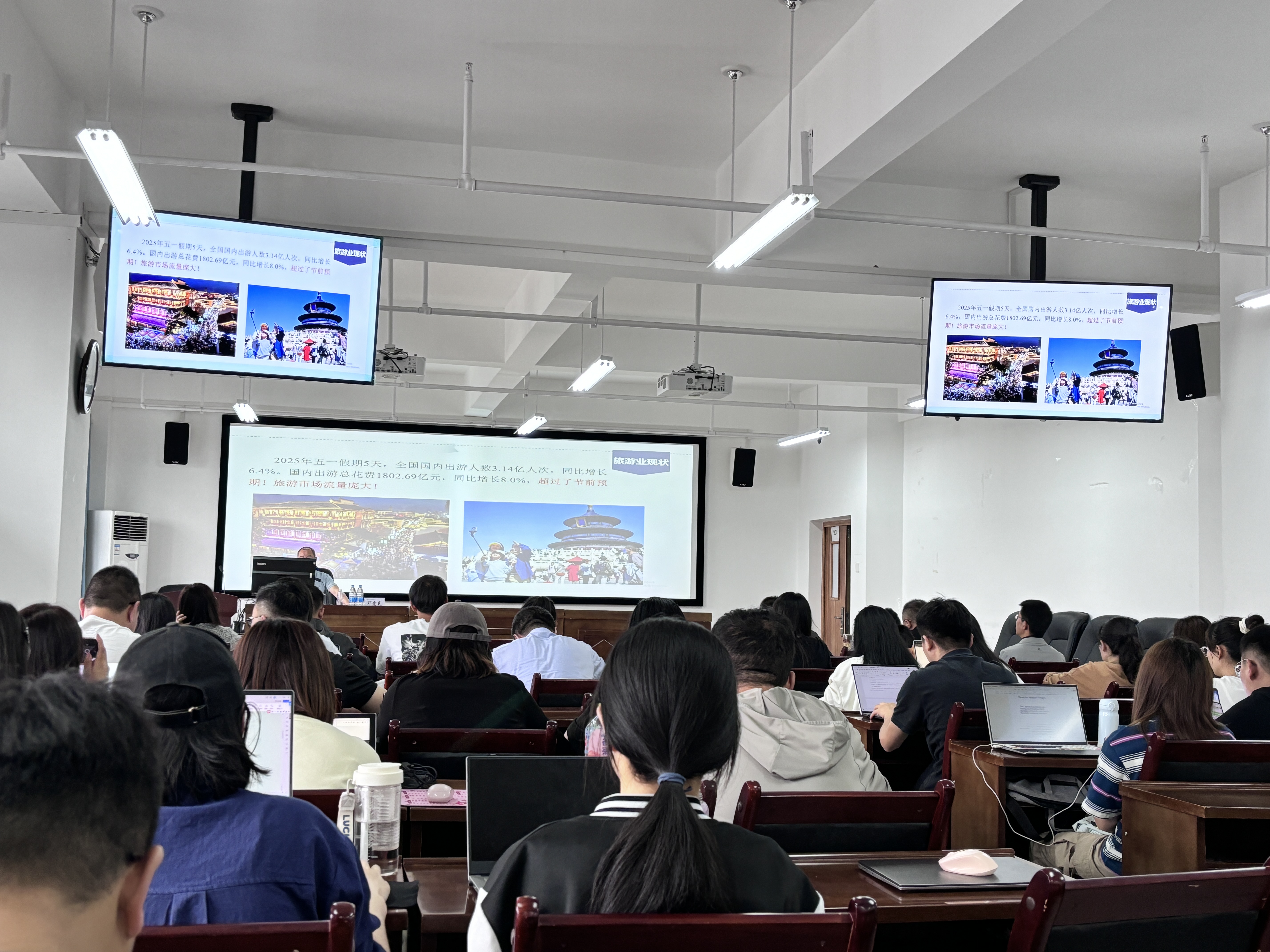 报告伊始,邓爱民教授便以独特的视角,聚焦近年来旅游业呈现出的“流量狂飙”现象。他首先将目光投向“特种兵旅游”,详细解读了这一新兴旅游模式在年轻群体中迅速走红的原因。指出其背后反映出的是当代年轻人对高效利用时间、追求多元体验的旅游需求,以及社交媒体传播助力下的旅游消费新趋势。紧接着,邓教授以淄博烧烤为例,深入剖析其出圈背后的城市运营逻辑。他提到,淄博烧烤的火爆并非偶然,当地政府的积极引导、商家的诚信经营以及社交媒体的广泛传播,共同构建起了一个成功的旅游营销案例。然而,在热度攀升的同时,也暴露出诸如城市接待能力有限、配套设施不够完善等问题。谈及哈尔滨文旅,邓教授指出其凭借独特的冰雪文化和一系列创新营销举措成功破圈,吸引了大量游客前往。但在旅游旺季也面临着服务质量把控、旅游市场规范等方面的挑战。通过对这些热门案例抽丝剥茧般的分析,邓教授不仅阐述了现象背后的逻辑、蕴藏的机遇,更深入挖掘了其中存在的问题。