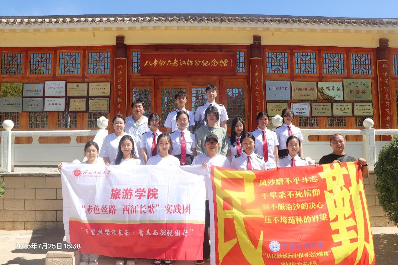 实践团通过走访甘州区西路军烈士纪念馆、红西路军永昌战役纪念馆等红色教育基地,在追寻西路军浴血奋战的英雄足迹中深刻体悟革命精神,同时结合古浪县“红色基因”与八步沙“绿色奇迹”的融合发展实践,探索出一条“红绿交融”的文旅新路径。这段跨越时空的精神之旅,让青年学子既在革命史诗中筑牢信仰根基,又在生态治理典范中汲取奋进力量,更通过实地调研、文化宣讲、新媒体传播等方式,将红色资源转化为育人力量与产业动能。实践团成员表示,将牢记习近平总书记“把红色基因传承好”的嘱托,把调研成果转化为推动红色文旅高质量发展的实际行动,以专业赋能讲好新时代的丝路故事,让西路军精神与“两山”理念在青春实践中绽放新的时代光芒。